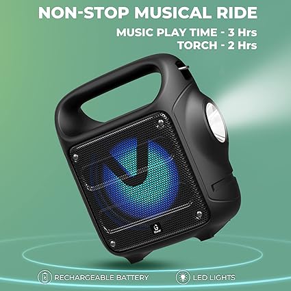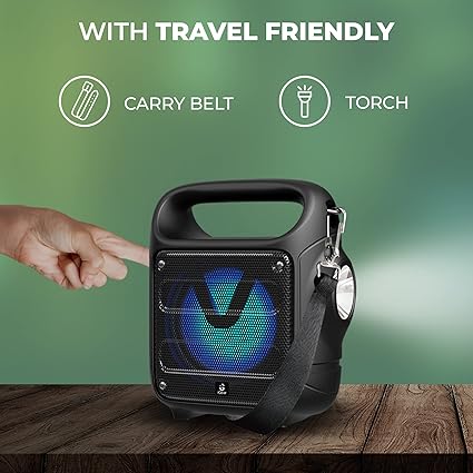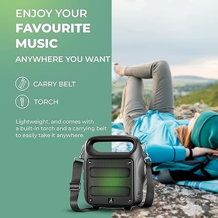 Built-in LED Torch with 3 Modes: Equipped with a handy LED torch featuring three modes, this speaker also doubles as an emergency light for added convenience during outdoor adventures.
